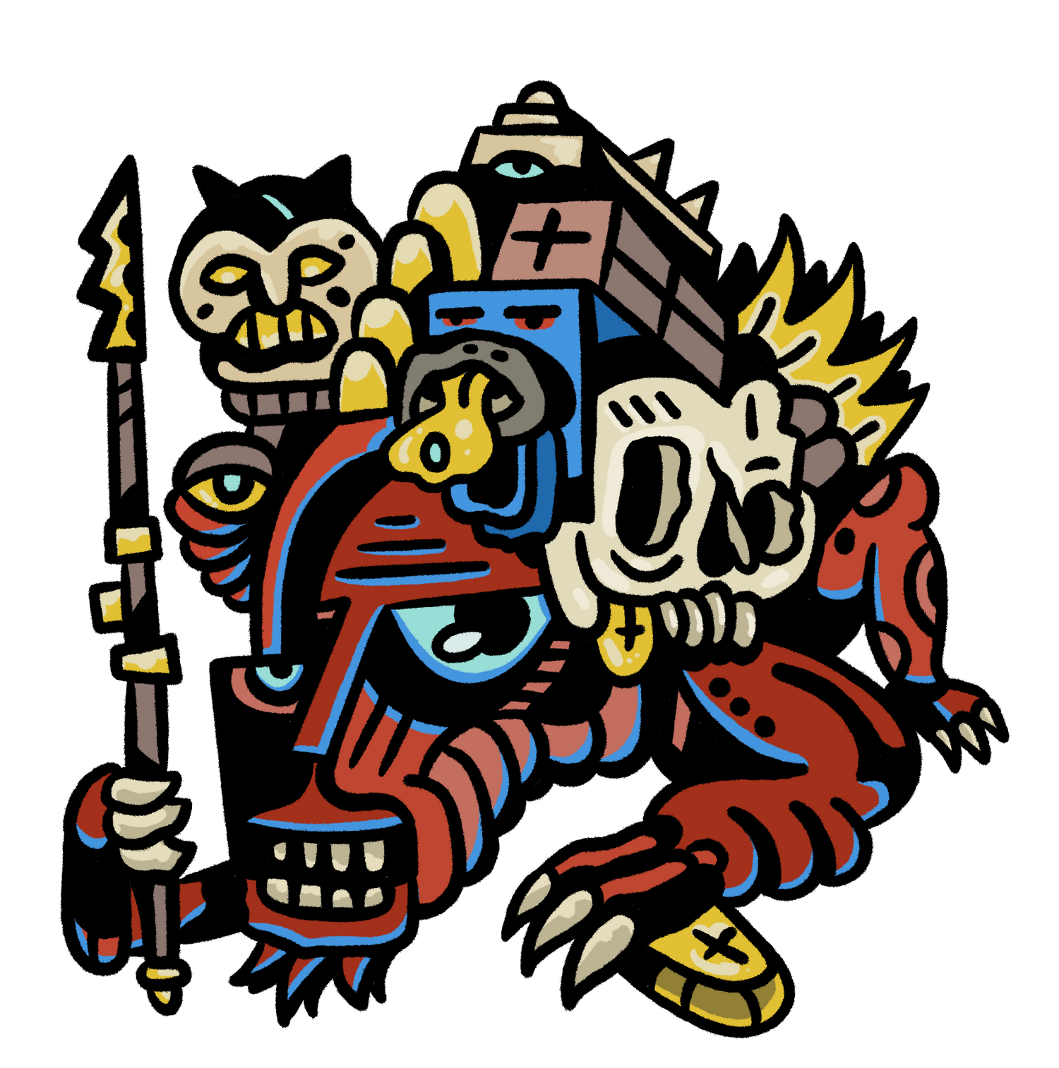 Jesse J is a multi talented artist who specializes in Illustration, painting, sculpture, tattoos and music production. He has operated in the gaming space for a number of years creating products and creating games for a variety of companies. Dark art psychedelia and neo pop tribalism are some genres that JesseJ has been catagorized under. Evoking strong illustrative qualities with dark whimsical characters and painterly mindfulness, Jesse fills his compositions to the brim with movement and mind bending colors.Â